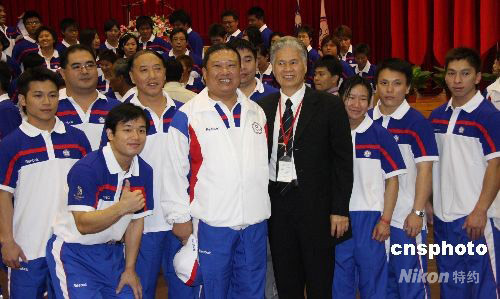 出征第二十九屆奧運(yùn)會(huì)的中華臺(tái)北隊(duì)合計(jì)一百三十三人,七月三十日在高雄左營運(yùn)動(dòng)選手訓(xùn)練中心正式成軍。 中新社發(fā) 曾嘉 攝