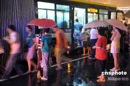 7月30日晚,北京奧運(yùn)開幕式帶妝彩排演練,一場大雨給觀看彩排后的觀眾乘車帶來不便。中新社發(fā) 陳文 攝