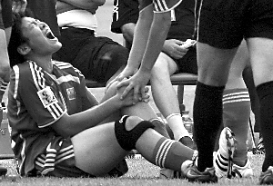 經(jīng)過專家會診,基本確定馬曉旭為左膝十字韌帶撕裂,打奧運會已經(jīng)不可能。昨晚18時50分,馬曉旭被女足隊醫(yī)背上了出租車,返回了足校。隊員和教練都到房間里進行了安慰,但卻換不回馬曉旭的一絲笑容。今日,她將來北京做進一步檢查。