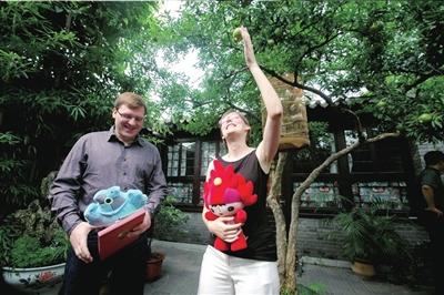 昨天,西城區(qū)旅游局為德國(guó)夫婦皮特和西蒙娜舉行了簡(jiǎn)短的歡迎儀式,并向他們贈(zèng)送奧運(yùn)福娃和胡同游覽地圖。這對(duì)年輕的德國(guó)夫婦是本市首批入住奧運(yùn)人家的外國(guó)游客。他們將在奧運(yùn)人家居住五天,然后返回上海工作!