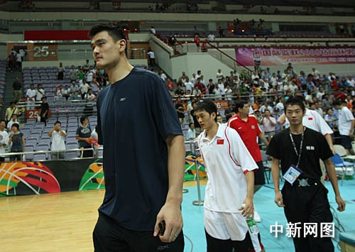姚明坐在球員區(qū)的第一排,表情輕松,看來他心情還不錯。他的右邊是中國男籃的外籍助教,主教練尤納斯緊挨著他的左邊坐下,而姚明的國家隊(duì)好友劉煒則坐在他后面,方便交流。易建聯(lián)和王治郅坐在另外一邊,開始看比賽的易建聯(lián)臉色有些陰郁,顯然昨天的比賽中得分吞零蛋至今還讓他耿耿于懷,不過王治郅卻顯得心情開朗,笑容滿面,雖然他在對澳大利亞隊(duì)的那場比賽中也不過得到四分。