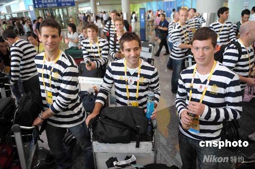 8月1日,澳大利亞曲棍球男隊(duì)一行飛抵北京,參加本屆夏季奧運(yùn)會(huì)。澳大利亞男隊(duì)將于8月11日對(duì)陣加拿大隊(duì)展開首場(chǎng)曲棍球賽。 中新社發(fā) 陳文 攝