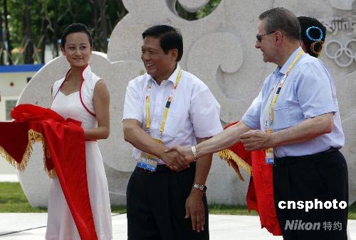 圖:羅格與劉淇為奧運村"和平友誼墻"剪彩