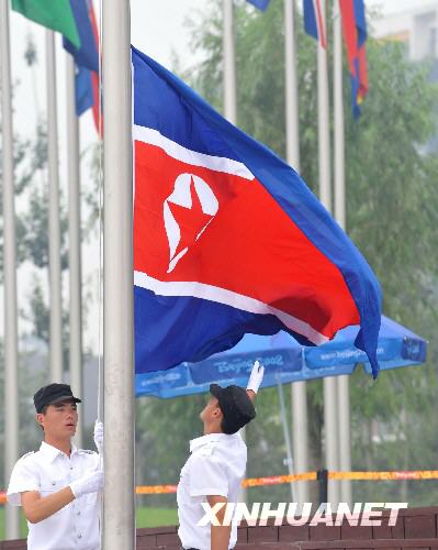 參加北京奧運(yùn)會(huì)的朝鮮奧運(yùn)代表團(tuán)4日在北京奧運(yùn)村舉行了升旗儀式。面對(duì)現(xiàn)場(chǎng)眾多記者的采訪,包括金章山團(tuán)長在內(nèi)的朝鮮代表團(tuán)成員均未給予任何回答。