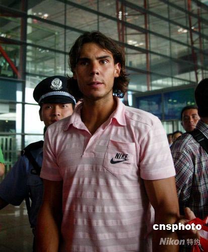 8月4日,有著“紅土之王”稱號的西班牙網(wǎng)球名將納達爾抵京,開始北京奧運會征程。中新社發(fā) 富田 攝