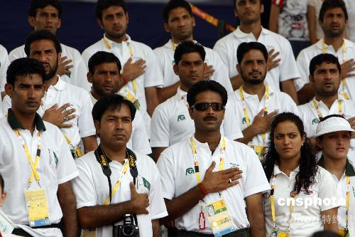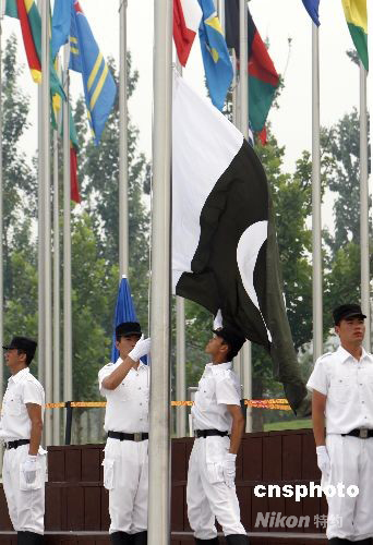 8月4日,巴基斯坦奧運(yùn)代表團(tuán)在北京奧運(yùn)村舉行升旗儀式。 中新社發(fā) 杜洋 攝