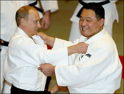 普京對柔道“情有獨鐘”,他曾說過:“當我一踏上柔道墊,感覺就像回家一樣! 俄羅斯媒體的消息說,普京所著的柔道教材以及該書附贈光盤將在2008年1至2月份上市銷售。該書附贈光盤是他同日本著名運動員山下泰裕(Yamashita Yasuhiro)一起錄制的。