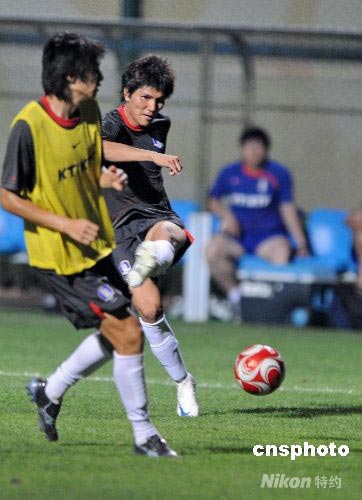 8月4日晚,韓國隊在秦皇島奧林匹克體育中心訓(xùn)練場進(jìn)行首次夜訓(xùn)。在當(dāng)晚的訓(xùn)練中,韓國隊主要進(jìn)行了隊員間的戰(zhàn)術(shù)、技術(shù)配合訓(xùn)練。8月7日晚,韓國隊將在秦皇島奧林匹克體育中心體育場首戰(zhàn)喀麥隆。 中新社發(fā) 劉學(xué)忠 攝
