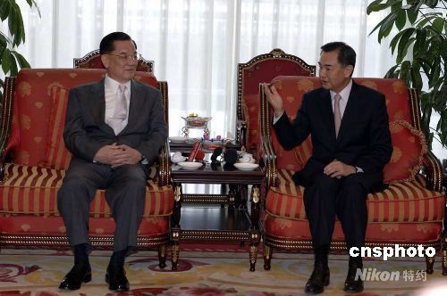 5日下午,中國國民黨榮譽(yù)主席連戰(zhàn)夫婦一行抵達(dá)北京首都機(jī)場,中共中央臺(tái)辦主任王毅到機(jī)場迎接。 中新社發(fā) 王東明 攝