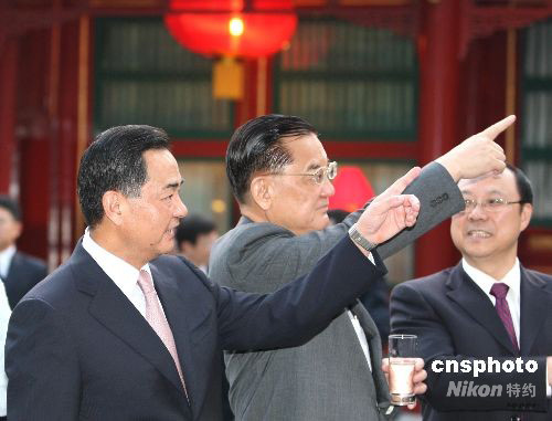8月5日,中共中央臺(tái)灣工作辦公室、國(guó)務(wù)院臺(tái)灣事務(wù)辦公室主任王毅在北京釣魚(yú)臺(tái)賓館會(huì)見(jiàn)并宴請(qǐng)出席北京奧運(yùn)會(huì)開(kāi)幕式的中國(guó)國(guó)民黨榮譽(yù)主席連戰(zhàn)一行。中新社發(fā) 廖文靜 攝