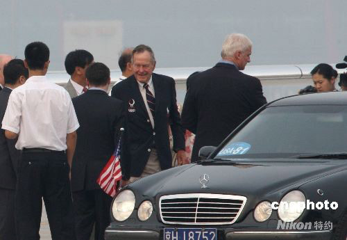 2008年8月6日16點(diǎn)57分,美國前總統(tǒng)老布什到達(dá)北京首都機(jī)場(chǎng),前來參加第29屆北京奧運(yùn)會(huì)開幕式及相關(guān)活動(dòng)。 中新社發(fā) 北有宋喬 攝