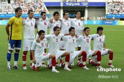 8月7日,北京奧運會上海足球分賽場男足預賽開賽,首場比賽由澳大利亞對陣塞爾維亞。中新社發(fā) 湯彥俊 攝
