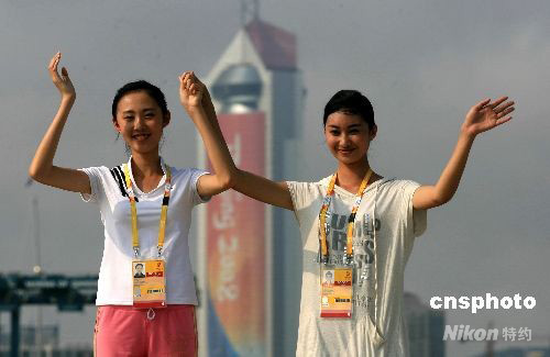 8月7日,青島迎來(lái)入夏以來(lái)最酷熱的天氣,奧帆賽頒獎(jiǎng)禮儀小姐們?cè)隍滉?yáng)曝曬下進(jìn)行排練,模擬奧帆賽頒發(fā)獎(jiǎng)牌的所有過(guò)程。按照要求,在長(zhǎng)達(dá)幾十分鐘的排練時(shí)間里,她們一直面帶微笑,舉止大方彬彬有禮。一遍遍苦苦排練熱得女孩們滿臉汗珠,但沒(méi)人叫苦,展示青島女孩最美的一面。 中新社發(fā) 周青先 攝