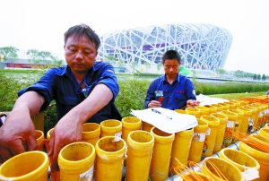 按標(biāo)準(zhǔn),用于鳥巢燃放的煙花,抽檢率高達(dá)50%,即每?jī)蓚(gè)成品出廠前,其中一個(gè)必須當(dāng)場(chǎng)試放。試放成品過(guò)關(guān),另一成品才能裝箱。(記者 王姝)