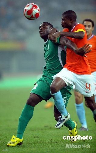 8月7日晚,在天津“水滴”體育場奧運男足小組賽上,荷蘭與尼日利亞隊零比零戰(zhàn)平。中新社發(fā) 陳文 攝