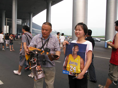 鄭非凡與父親一起專程趕至首都機(jī)場,只為一睹科比風(fēng)采。即將就讀高一的鄭非凡說,從兩年前開始喜歡科比,“因?yàn)樗虼虻锰貏e好”,也十分喜歡中國的姚明。
