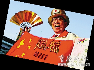 山田老人為北京奧運(yùn)加油。 圖片來(lái)源:重慶晚報(bào)