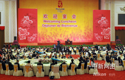 今晚,北京奧運會將隆重開幕,我們共同期待的這個歷史性時刻就要到來了。我謹代表中國政府和人民對各位嘉賓蒞臨北京奧運會,表示熱烈的歡迎!