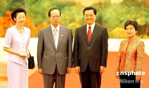 圖:胡錦濤夫婦歡迎日本首相福田康夫夫婦