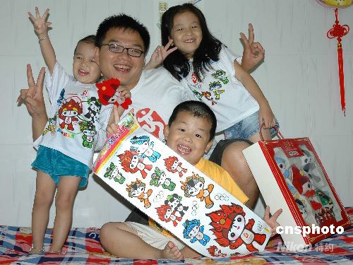 8月8日,越南胡志明市的華人在奧運開幕之際,身著印有北京奧運標志和吉祥物福娃的服裝,祝福北京奧運。據(jù)悉,這些服裝和吉祥物是華人專門到中國廣西購買的。中新社發(fā) 楊巧笑 攝