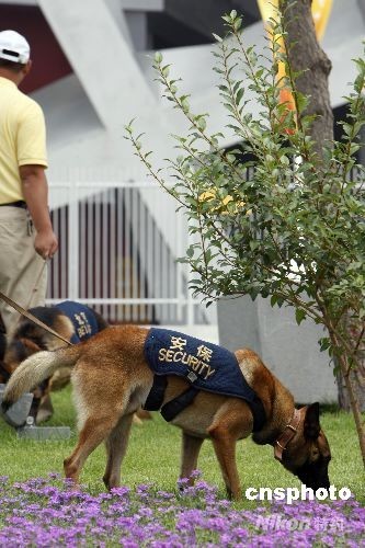圖為搜爆犬在“鳥巢”周邊搜爆。中新社發(fā) 杜洋 攝