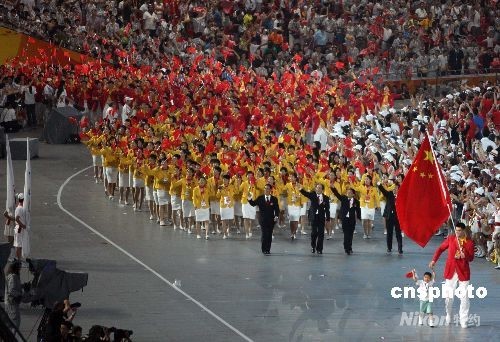 圖:北京奧運(yùn)會(huì)開(kāi)幕中國(guó)代表團(tuán)入場(chǎng)