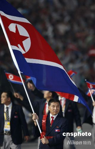 圖為朝鮮奧運代表團旗手。中新社發(fā) 杜洋 攝