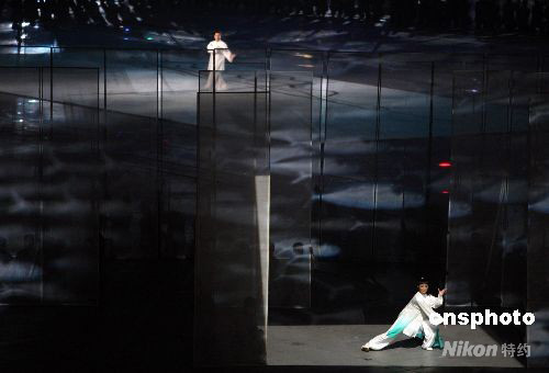 第二十九屆夏季奧運會8月8日晚在北京奧林匹克公園內(nèi)的國家體育場舉行開幕式,一場視覺饕餮盛宴上演,各個環(huán)節(jié)都引人入勝,精彩紛呈。圖為由武術(shù)高手表演“中國功夫”令人叫絕。 中新社發(fā) 任晨鳴 攝