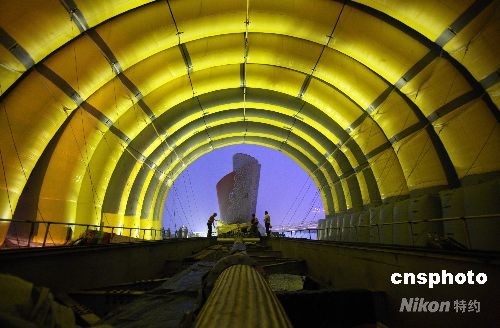 圖為33米長、23米寬、15米高的氣肋式膜結(jié)構(gòu)建筑的火炬房子。中新社發(fā) 佟偉 攝