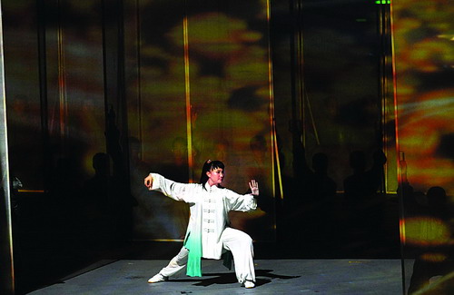 在特有的太極境界里,外有舒緩、柔和、自然的拳式,內(nèi)有松靜、安舒、平和的心境,蘊含著太極的剛?cè)嶂、神韻之美和協(xié)調(diào)之美。此時無聲勝有聲,默默展示著中國人對生命、對于自然、對于平衡、發(fā)展的理解,表達著東方獨有的人文情懷。