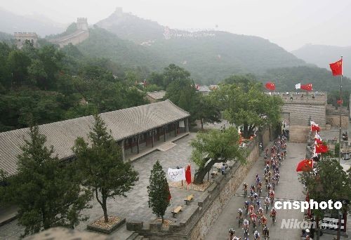 圖為選手經(jīng)過(guò)八達(dá)嶺長(zhǎng)城。中新社發(fā) 武仲林 攝