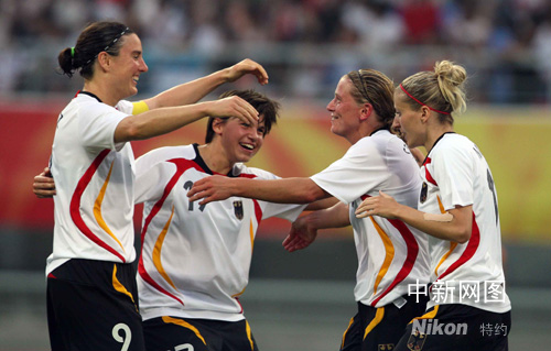 德國對尼日利亞,下半場德國隊攻入一球。圖為隊員慶祝進球。中新社記者 張宇 攝