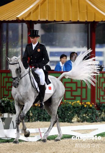 八月九日晚,在香港沙田奧運馬術(shù)賽場上,三項賽的盛裝舞步夜間賽事開賽。奧運會歷史上第一位參加馬術(shù)比賽的中國選手華天輕駕他的愛駒,優(yōu)雅登場。為期十一天的奧運馬術(shù)賽九日在香港沙田賽場拉開戰(zhàn)幕,中國馬術(shù)隊和中國香港馬術(shù)隊均首次亮相奧運馬術(shù)賽場。 中新社發(fā) 洪少葵 攝