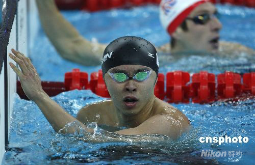 8月9日,日本選手北島康介在男子100米蛙泳預(yù)賽中,以59秒52的成績進入半決賽。中新社發(fā) 杜洋 攝