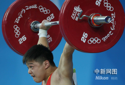 年僅十七歲的中國(guó)選手龍清泉在北京奧運(yùn)會(huì)舉重項(xiàng)目男子56公斤級(jí)的比賽中,勇奪冠軍。這是中國(guó)軍團(tuán)在本屆奧運(yùn)會(huì)上獲得的第六面金牌。中新社記者 武仲林 攝