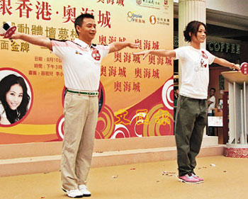 中新網(wǎng)8月11日電 據(jù)香港文匯報報道,剛從奧運開幕儀式上傳遞火炬的前體操金牌得主李小雙和為奧運開幕式擔任表演嘉賓的容祖兒,10日雙雙為香港奧海城舉行“一面金牌 一個夢想的實現(xiàn)”主持揭幕儀式。