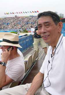 圖:詹先生透過收音機評述和現(xiàn)場大屏幕了解比賽規(guī)則,覺得越看越有意思。(圖片來源:大公報)