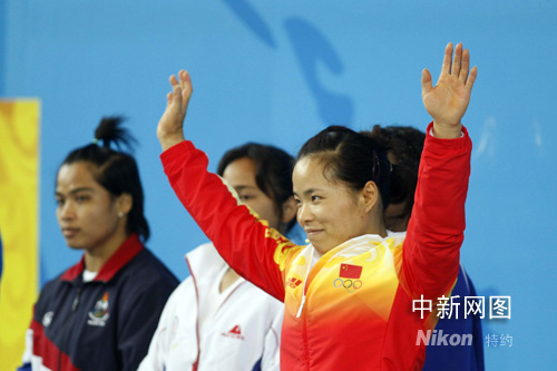 圖:陳艷青獲得女子舉重58公斤級金牌