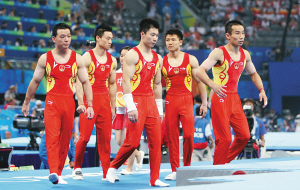 由“三老”李小鵬、楊威、黃旭,以及“三新”肖欽、陳一冰、鄒凱組成的中國(guó)隊(duì)前天在本屆奧運(yùn)會(huì)體操男子團(tuán)體資格賽中,以374.675分、領(lǐng)先老對(duì)手日本隊(duì)5分多的優(yōu)勢(shì),高居各隊(duì)之首。