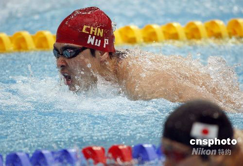 8月12日,中國選手吳鵬以1分54秒93的成績,順利晉級北京奧運會男子200米蝶泳決賽。中新社發(fā) 杜洋 攝