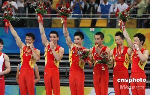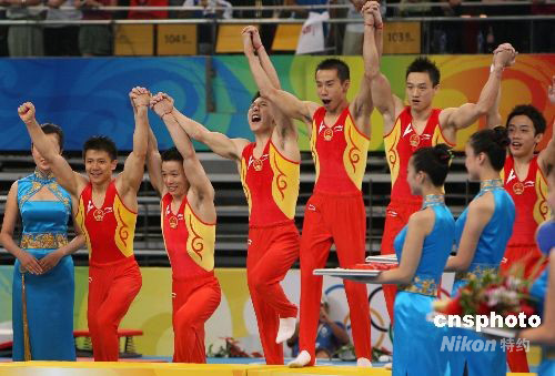 8月12日,在國家體育館舉行的男子體操團(tuán)體決賽中,中國隊以總分286.125分力壓老對手日本隊,領(lǐng)先第二名7分多的優(yōu)勢奪得體操男子團(tuán)體的冠軍,為中國體操隊贏得了開門紅,這是中國代表團(tuán)在本屆奧運會上的第10枚金牌。 中新社發(fā) 武仲林 攝