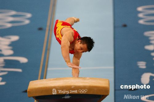 8月12日,中國隊(duì)在北京奧運(yùn)會(huì)體操男子團(tuán)體比賽中以286.125分勇奪金牌。中新社發(fā) 武仲林 攝