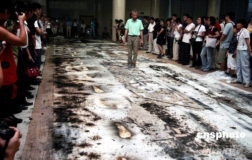 八月十二日晚,世界著名華裔藝術(shù)家、北京奧運會視覺特效藝術(shù)總設(shè)計蔡國強先生在福建泉州爆破他的又一新作“歷史足跡”。這次蔡國強把在北京奧運會開幕式上令世界人民印象深刻的古今同步、跨越時空的二十九個腳印呈現(xiàn)在家鄉(xiāng)人面前。中新社發(fā) 傅丹丹 攝