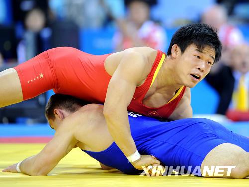 8月13日,常永祥(紅)在比賽中。當(dāng)日,在北京奧運會男子古典式摔跤74公斤級半決賽中,中國的常永祥戰(zhàn)勝白俄羅斯的奧列格·米哈伊洛維奇,闖入決賽。新華社記者 李鋼 攝