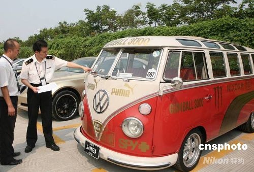 圖為海關(guān)關(guān)員正在驗(yàn)放一批“古董”名車。