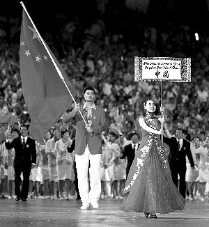 開幕式上,于佩舉牌引導(dǎo)中國代表團入場。Paul Gilham攝