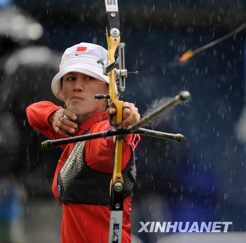8月14日,在北京奧運(yùn)會射箭女子個(gè)人決賽中,中國選手張娟娟以110比109環(huán)戰(zhàn)勝韓國選手樸成賢,獲得冠軍。