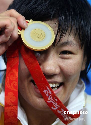 8月14日晚,中國女子柔道名將楊秀麗在北京奧運會女子柔道78公斤級決賽中擊敗古巴名將亞倫妮斯·卡斯蒂略獲得冠軍,將金牌收入囊中。中新社發(fā) 任晨鳴 攝