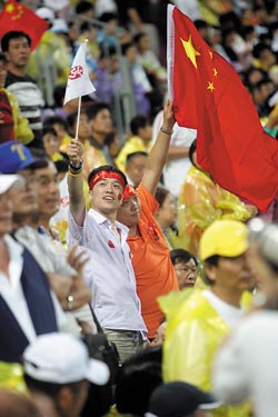 中華臺北奧運棒球隊14日在北京奧運出戰(zhàn)強敵日本,有許多中國球迷前來加油助威 臺灣《中國時報》圖