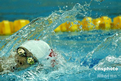 8月14日,在女子800米自由泳預(yù)賽中,第一小組的頭名被中國(guó)香港的運(yùn)動(dòng)員歐鎧淳獲得,她的成績(jī)是8分41秒66,但這個(gè)成績(jī)不足以進(jìn)入決賽。中新社發(fā) 杜洋 攝